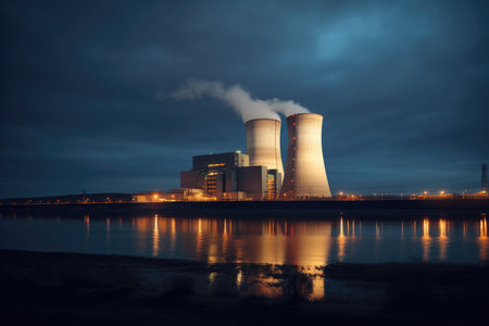 Generative AI, nuclear power plant with dusk landscape