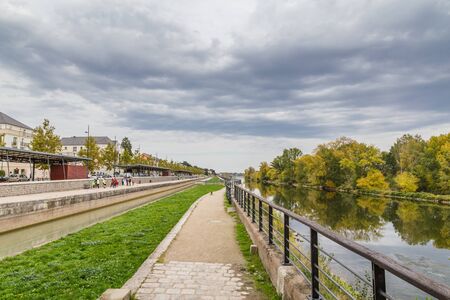 Walking trail along the Sluice iLoire under Brdige Rene Thinat in Orleans France