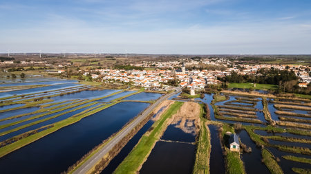 drone view of the salt marshes of Ile d Olonne, Vendee, France on a winter day in good weather
