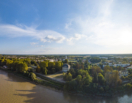 Aerial wiev Bordeaux region, garonne river, forest,landscape south west of france, Gironde, Europe