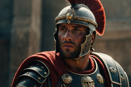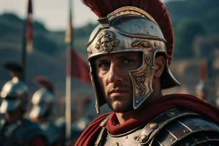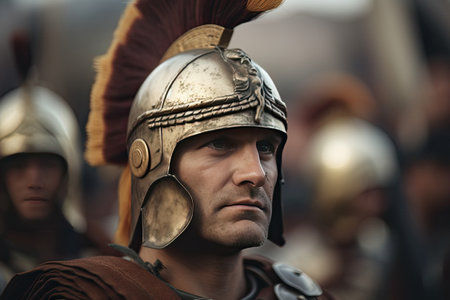 Ancient warrior: roman soldier, the strength and discipline of the Roman empires military, clad in armor and bearing weapons, the power and influence of Rome across the ancient world.