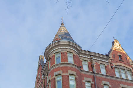 Fragments of the facade. Ancient buildings. Scandinavian architecture. Helsinki, Finland. High quality photo