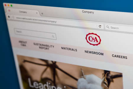 LONDON, UK - AUGUST 10TH 2017: The homepage of the official website for C&A, the Dutch clothing and fashion retailer, on 10th August 2017.