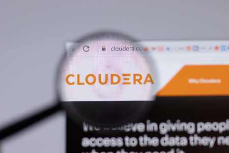 New York, USA - 26 April 2021: Cloudera logo close-up on website page, Illustrative Editorial