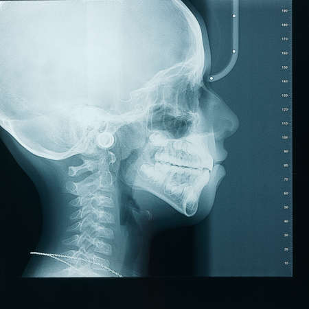 X Ray of human head skull, side view. Cranium medical analysis - Xray, MRI, CT Diagnostic Scan Photo. High quality photo