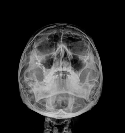 Medical hospital x-ray face skull mouth, teeth, nose and eyes scan.
