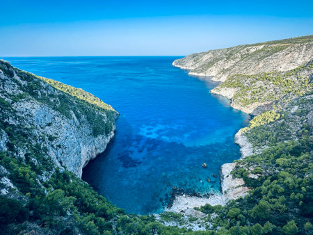 Viewpoint of Cliffs of Kambi in Zakynthos Greece Island. Beautiful cliff coast on Greek island. Wild cliffs of the western Zakynthos