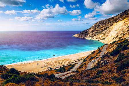 Amazing landscape of Kokkinos Vrachos Beach with blue waters, Lefkada, Ionian Islands, Greece