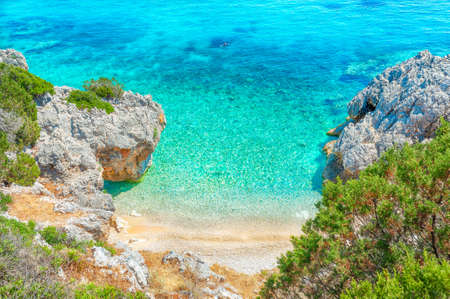 Remote and hidden Fteri beach in Keflaonia Island, Greece, Europe