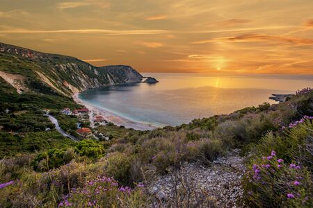 Kefalonia, Greece. View over Myrtos beach, Assos.