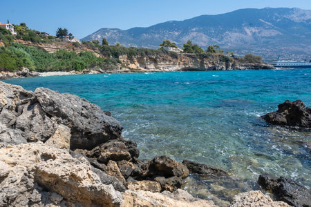 Landscape with Kato Lagadi Beach in Kefalonia, Ionian island, Greece