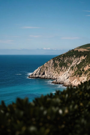 Beautiful scene with blue sky and sea in Kefalonia, Greece.
