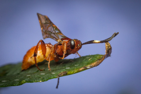 Black back mud-wasp is a common hornet in Southeast Asia. These hornets are poisonous in the bottom to be used to attack prey or invasive enemies.