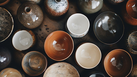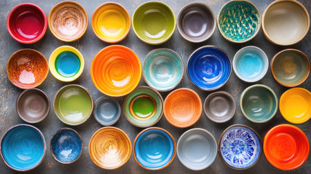 A vibrant collection of ceramics in a close up arrangement generated by artificial intelligence
