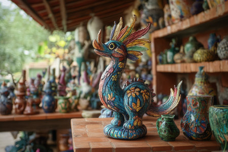 Colorful alebrije dragon statue displayed in mexican artisan shop