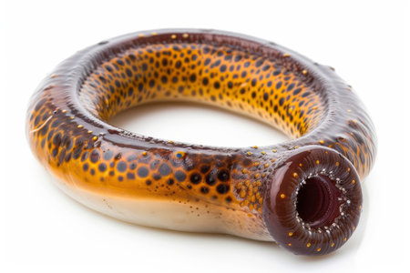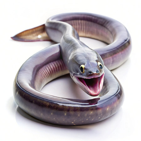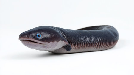 representation highlights hagfish unique marine species known for its eel like shape and slimy texture depicted in vivid detail on a stark white background.
