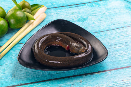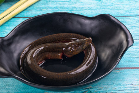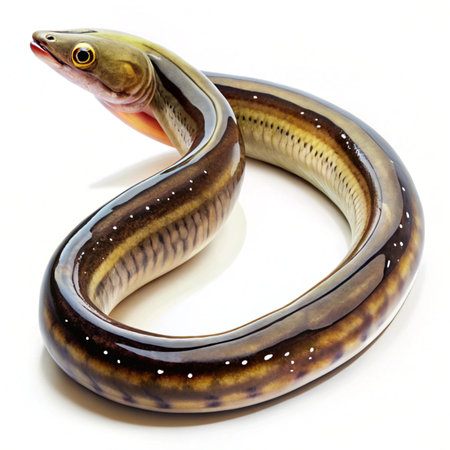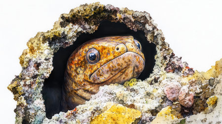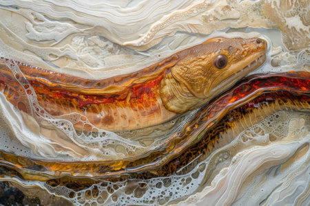 This image captures a lifelike representation of an eel-like creature, emphasizing its detailed textures and colors. Ideal for nature and wildlife projects.