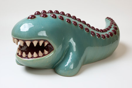Ceramic dinosaur figurine with open mouth and sharp teeth