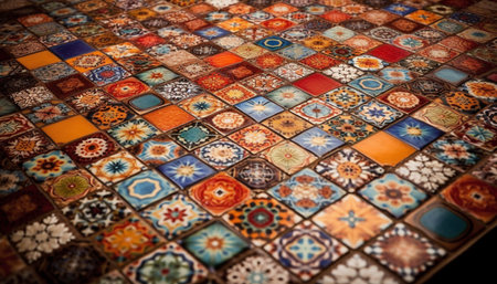 Beautiful mosaic tile geometric pattern showcasing intricate decorative design in vibrant colors
