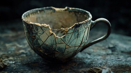 delicate cup intricately mended from broken shards symbolizes the journey of healing and forgiveness reflecting the art of resilience and love in relationships.