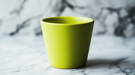 A bright green ceramic pot displayed on a smooth marble surface. The minimalist design exudes elegance and perfect for decorative or gardening use.