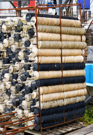 Old Oyster Seed Collectors for trapping and fixing young oyster larvae on an oyster farm in France in France