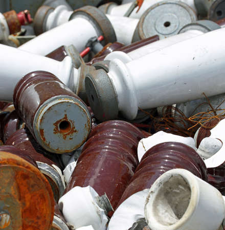 pieces of ceramic Electrical insulators in an industrial waste landfill