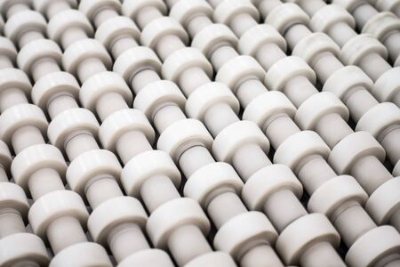 Conveyor Belt White Small Roller Wheels Closeup Detail