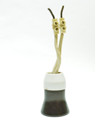 Vintage light bulb socket made of porcelain and plastic with wiring
