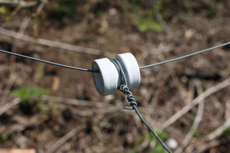 close up of an electrical wire fence around a pasture.