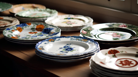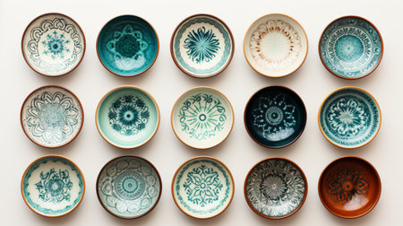 collection of hand-painted ceramic plates, created with generative ai