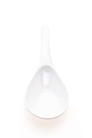 Flay lay photo of white plastic disposable spoons. Creative top view pattern. Calm clear colours.