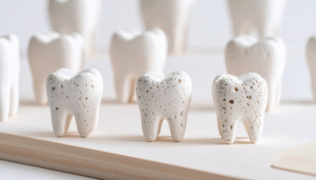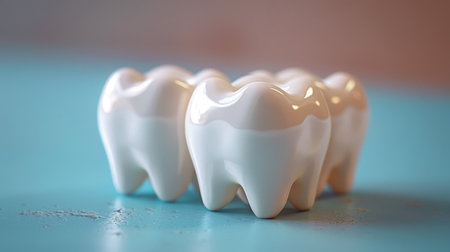 This image features a close-up view of a detailed dental model showcasing healthy human teeth. The glossy finish and smooth surface highlight the importance of dental care and aesthetics in oral health.