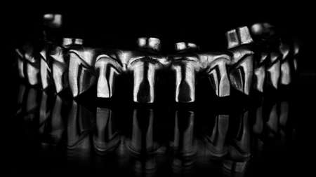 ceramic dental veneers for the upper jaw, composition on black glass in black and white style