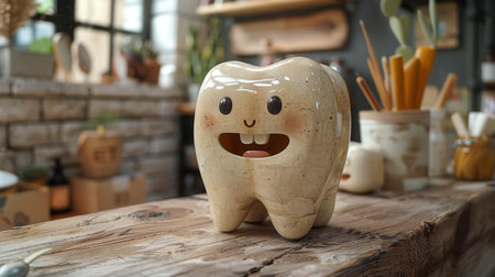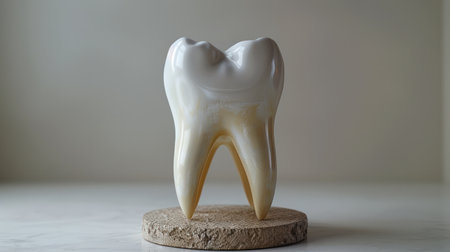 A stunning porcelain tooth sculpture elegantly showcased on a wooden stand.