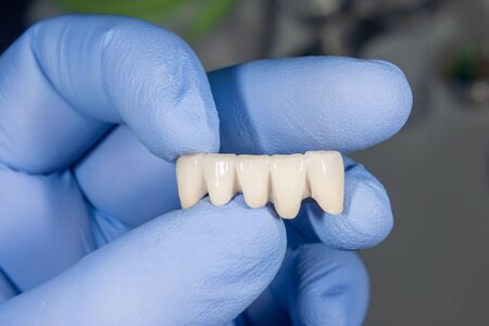 dental ceramic metal bridges are on the table
