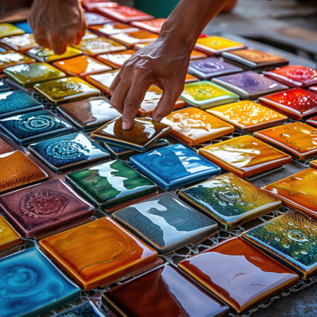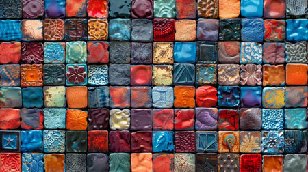 A stunning arrangement of colorful decorative tiles showcasing intricate patterns and textures, ideal for art projects and interior decoration.