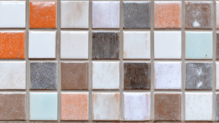 Colorful Square Pattern Ceramic Tiles Arrangement on Wall in Room Decor Display