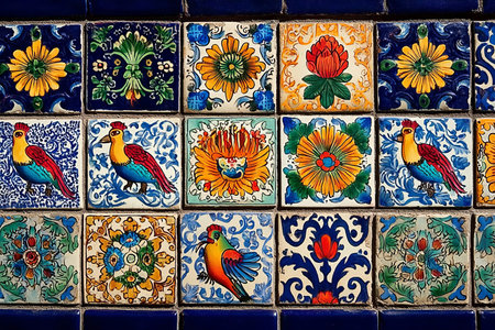 Beautifully Crafted Talavera Tile Mosaic Art Featuring Intricate Patterns and Vibrant Colors