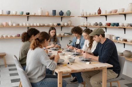 Creative Pottery Workshop: Friends Shaping Clay and Crafting Unique Ceramic Pieces