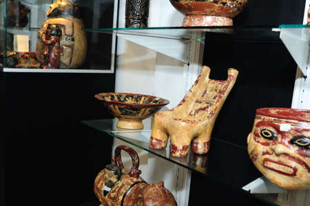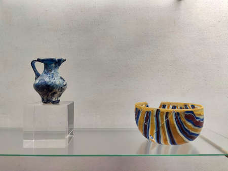 Malaga, Spain - October 21, 2023:Various mixed pottery artifacts at Malaga museum, Spain.