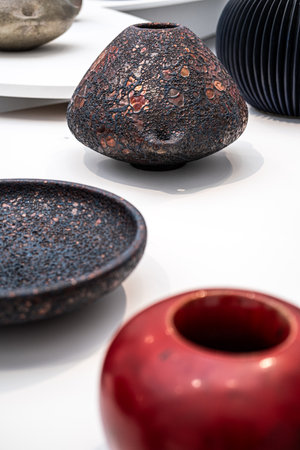 Warsaw, Poland - March 21, 2024. Modern Ceramic Artwork Exhibition by Henryk Lula