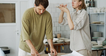 Creative Pottery Workshop: Friends Shaping Clay and Crafting Unique Ceramic Pieces