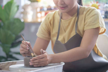 Woman making ceramic pottery. Concept for woman in freelance, business.