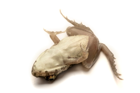 The Cameroon slippery frog (Conraua robusta) is one of the largest frog species on earth. These giant, heavily muscled frogs live in cold, fast-moving rivers in Cameroon and Nigeria