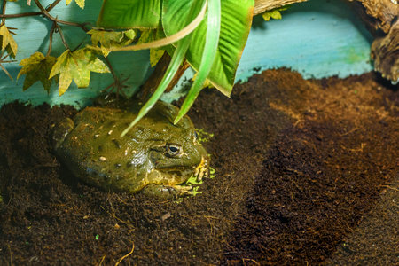 Giant African Bullfrog (Pyxicephalus adspersus), resting in a dark place
