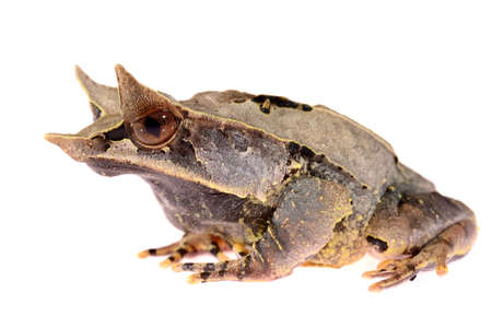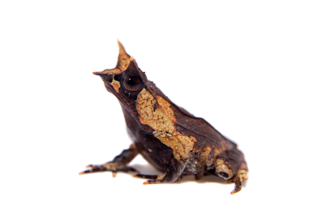 Long-nosed horned frog, Megophrys nasuta, isolated