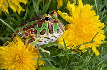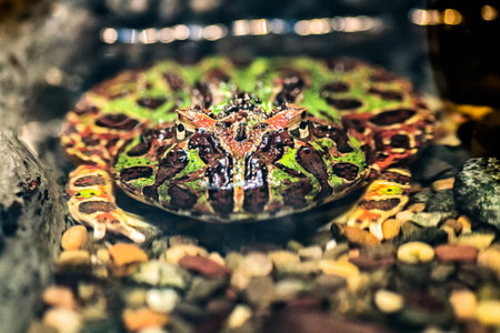 An exotic Horned Frog (Ceratophrys) showing its wide mouth.