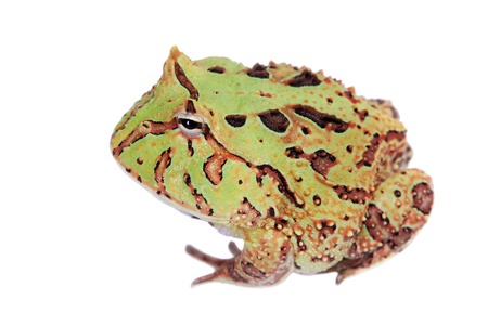 The Surinam horned frog, Ceratophrys cornuta, isolated on white background