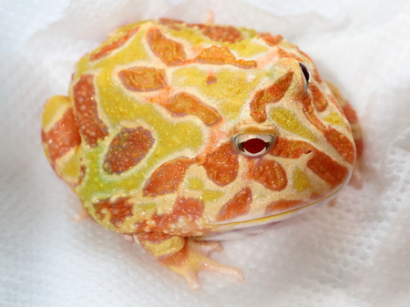 Ornate horned frog, Ceratophrys ornata on blotting paper